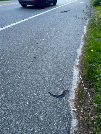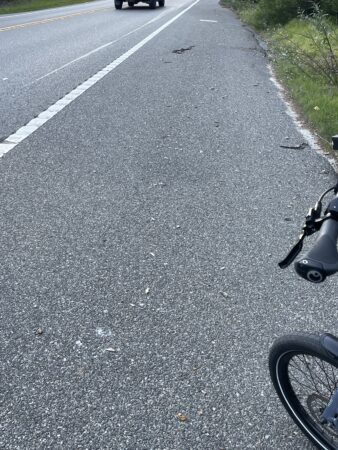 Road hazards such as scattered debris pictured above might not look like much. But when you’re trying to avoid a punctured bicycle tire by striving to dodge sharp debris on a road—while also trying to avoid being hit by a motor vehicle—it’s a big deal!