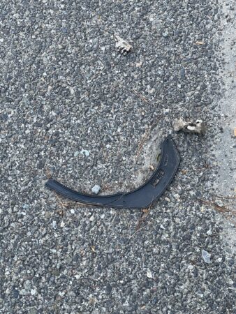We reported this — and other debris on California State Route 68 / Highway 68 — directly to Caltrans / California Department of Transportation, District 5 office. The debris in the photo above was soon cleaned up. Unfortunately, the nearby debris we’d also reported (below) was not, so we submitted another report!