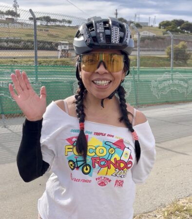 On March 23 we were chatting with the cycling duo below: Salinas residents David, a teacher, and his daughter, Priscilla, home on spring break from her CalPoly classes. Among the topics we touched on was Sea Otter Classic.