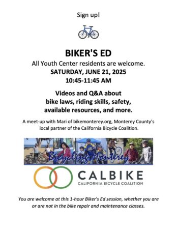 If those words strike a chord for you, perhaps you’d like to “visit” some incarcerated Monterey County teens June 21. How? By purchasing and dropping off socks or other allowable items that Bicycling Monterey can take as gifts for boys in biker’s ed class June 21 at the Probation Department Youth Center. If interested, please phone us promptly to arrange dropping off gifts no later than June 20. Kindly note: No red, blue, or sports insignia. Alternatives to socks: Jigsaw puzzles, yarn for knitting, paperback books (nonviolent, positive content). And you bet, bike themed would be cool, but not essential. Number of gifts needed: 12-15 (consider teaming up with friends).