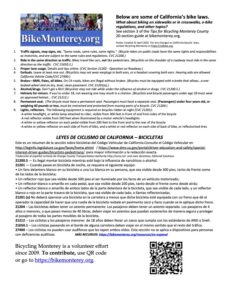 - Condado de MONTEREY – Bicycling Monterey. en español y en inglés: CA bike law summary – bilingual – 2025