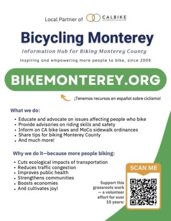 This guide, provided as a public service, was first published in 2009, with many subsequent updates. For additional updates, or if you have questions, please contact us. To return to the portal page of the Tips for Bicycling Monterey County 20-section guide, click here.
